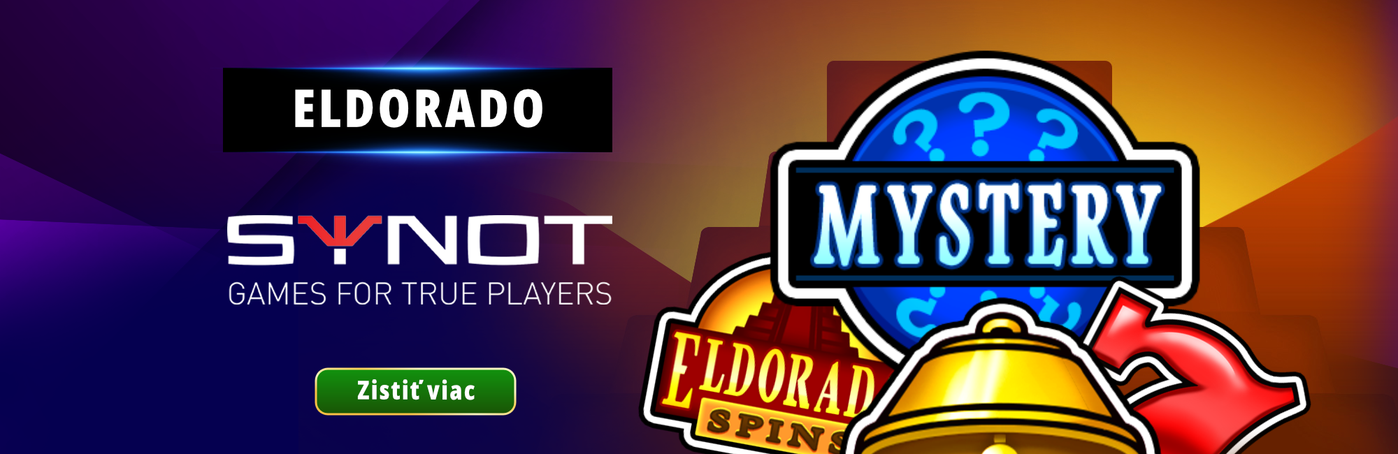 Eldorado slot je trojvalcová hazardná hra s 5 pevnými výhernými líniami od poskytovateľa SYNOT Games. V kasíne MONACObet je minimálna stávka 0,10 €, maximálna stávka 1 000 € a maximálna výhra 500 000 €. Hra obsahuje bonusový symbol Eldorado Spins s voľnými otáčkami, scatter symbol Mystery s náhodnou výhrou, štvorúrovňový SYNOT Progressive Bonus a voliteľnú Risk hru na zdvojnásobenie výhry.